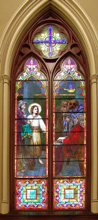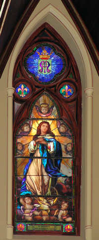 ![]() Center window over alter The Immaculate Conception is based on the famous painting of the same name by the artist Murillo. |